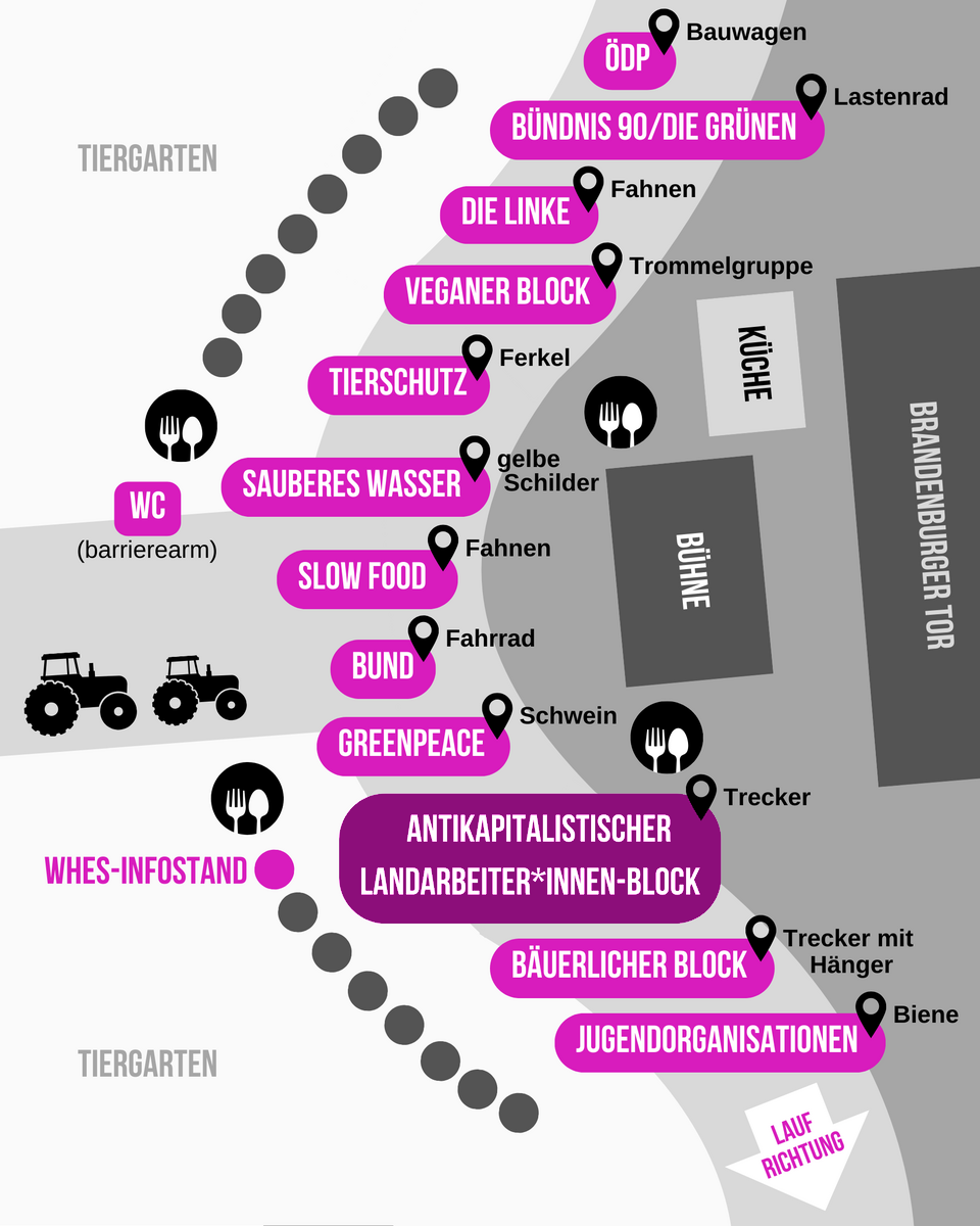 - 17.1.: 9 Uhr – 11:15 Uhr: Frühstück für Beschäftigte aus den Grünen Gewerken @ PA58 | 12 Uhr: Antikapitalistischer Landarbeiter:innen-Block auf der „Wir haben es satt!“-Demo @ Brandenburger Tor | 17 Uhr: Aufwärmen und Ankommen @PA58 | 18 Uhr: veganes Abendessen für alle @PA58 | 19:30 Uhr: Vernetzungsabend mit ELAN, IGG, Interbrigadas, jAbL und anderen @PA58 | danach Ausklang und Übernachtung
